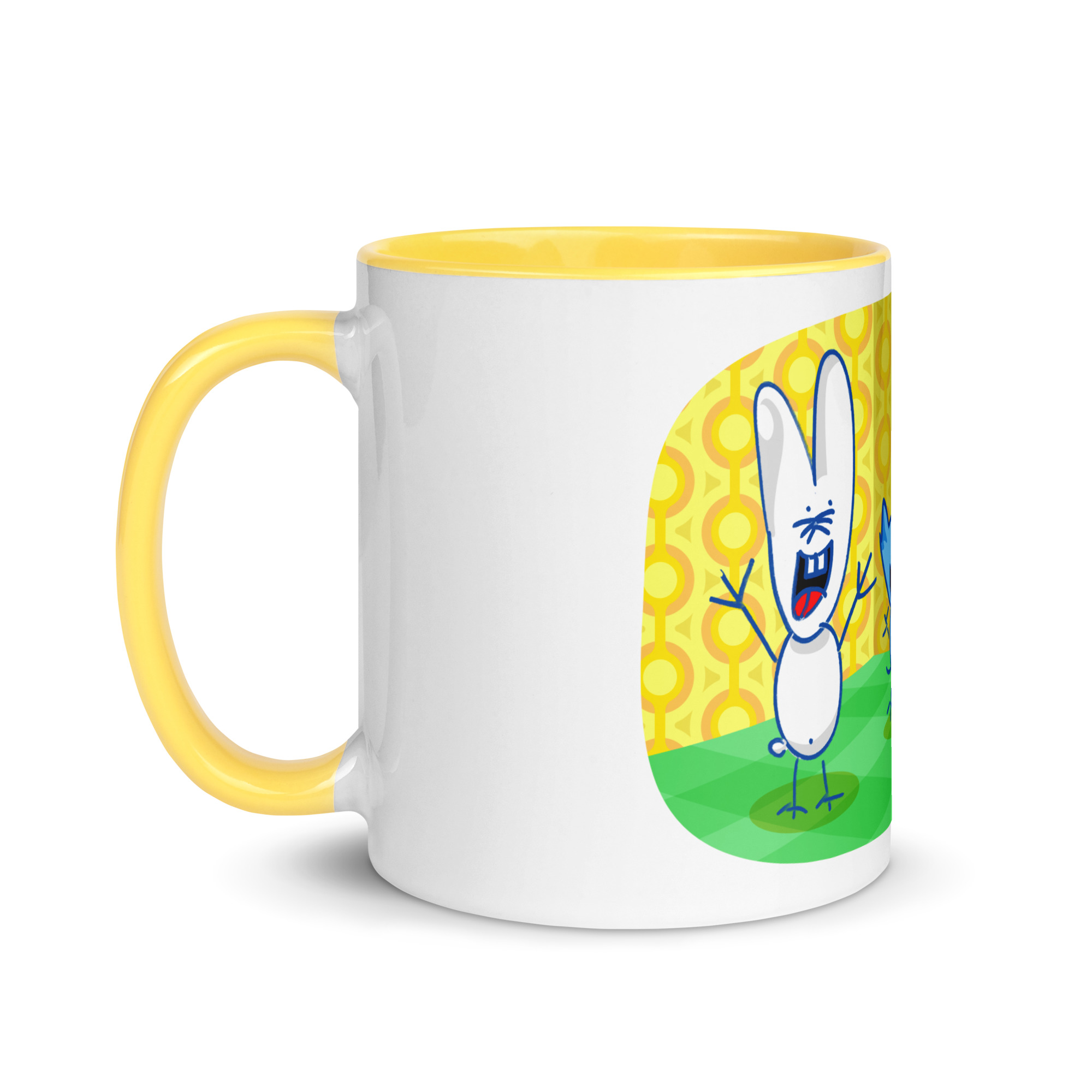 Three residents from the Azotea de Santi spreading good vibes on this color-coordinated mug to brighten your chosen moment of the day!